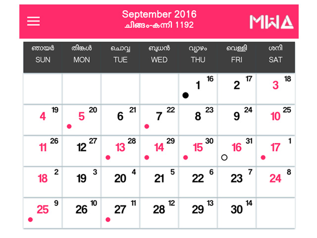 MWA Traditional calendar is an introduction to new way of Calendar usability, Traditional date with respect to Gregorian Calendar, special days and its significance, Thidhi and star sign with detailed timing.